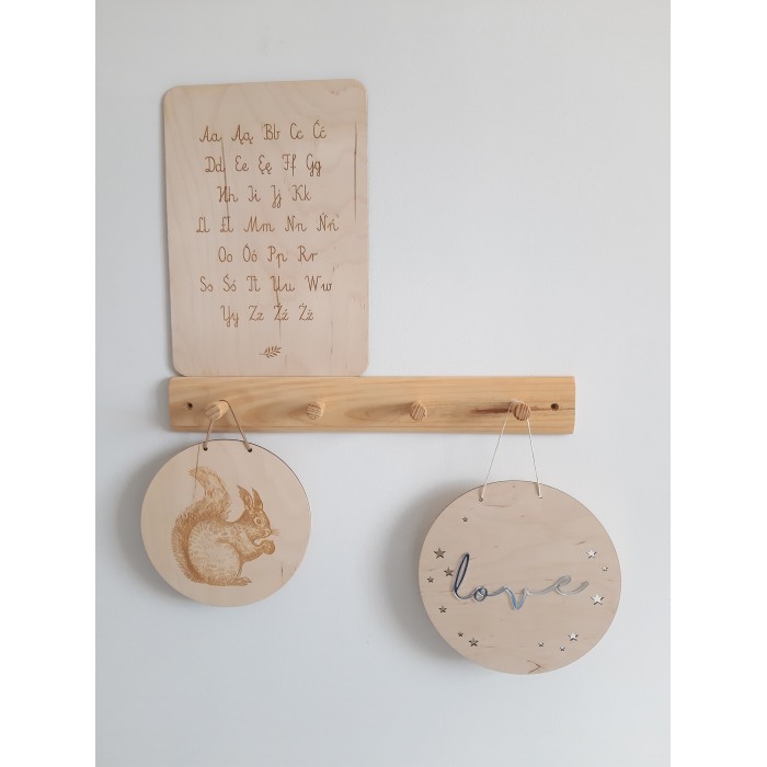 Zawieszka posiada sznurek, dzięki któremu powiesimy go w dowolnym miejscu. np. na drzwiach, szafie, tipi.