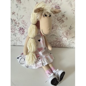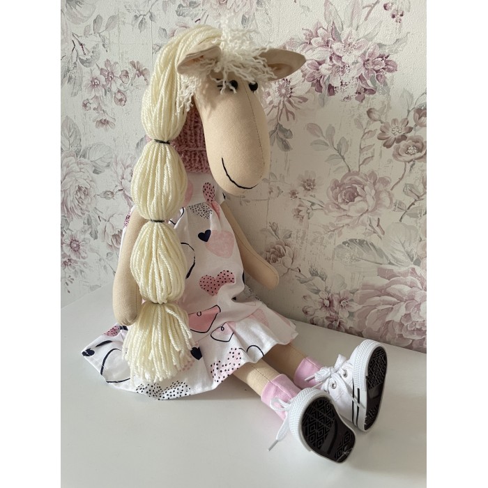 Elementem, którym wyróżnia maskotkę są zdecydowanie włosy z włóczki, z których można tworzyć przepiękne fryzury.