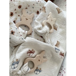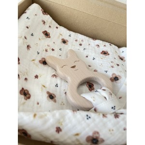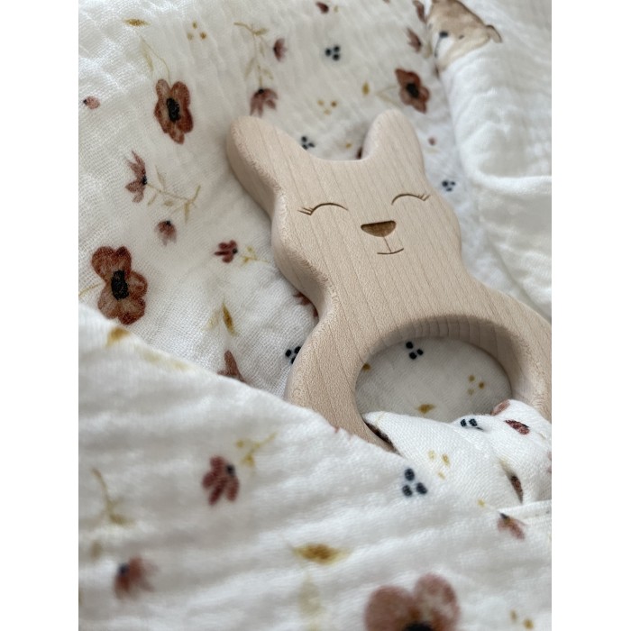Muślinowa przytulanka boho kwiatki z klonowym gryzakiem
